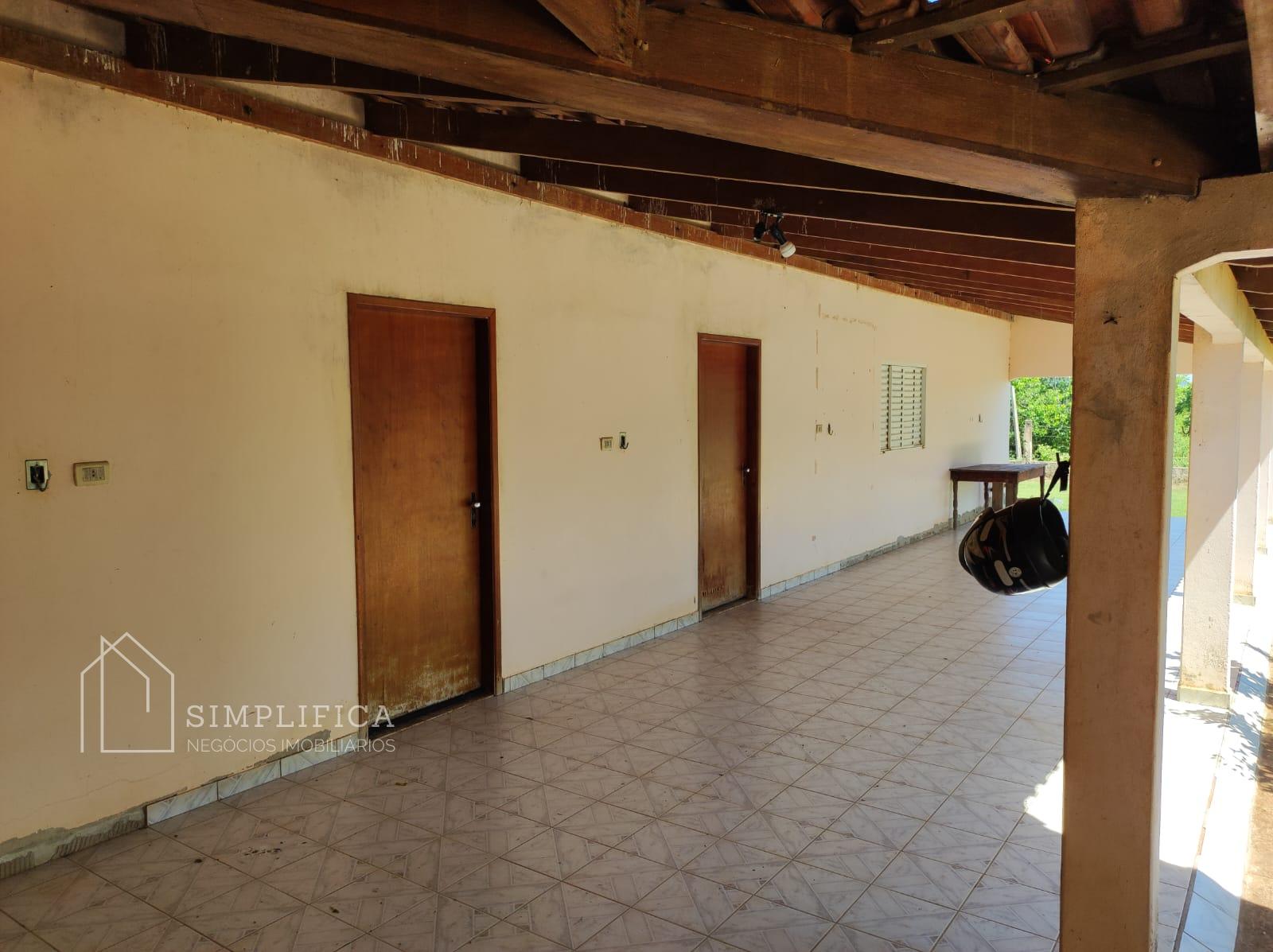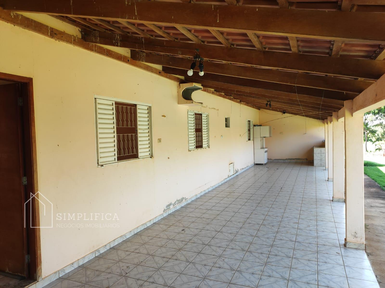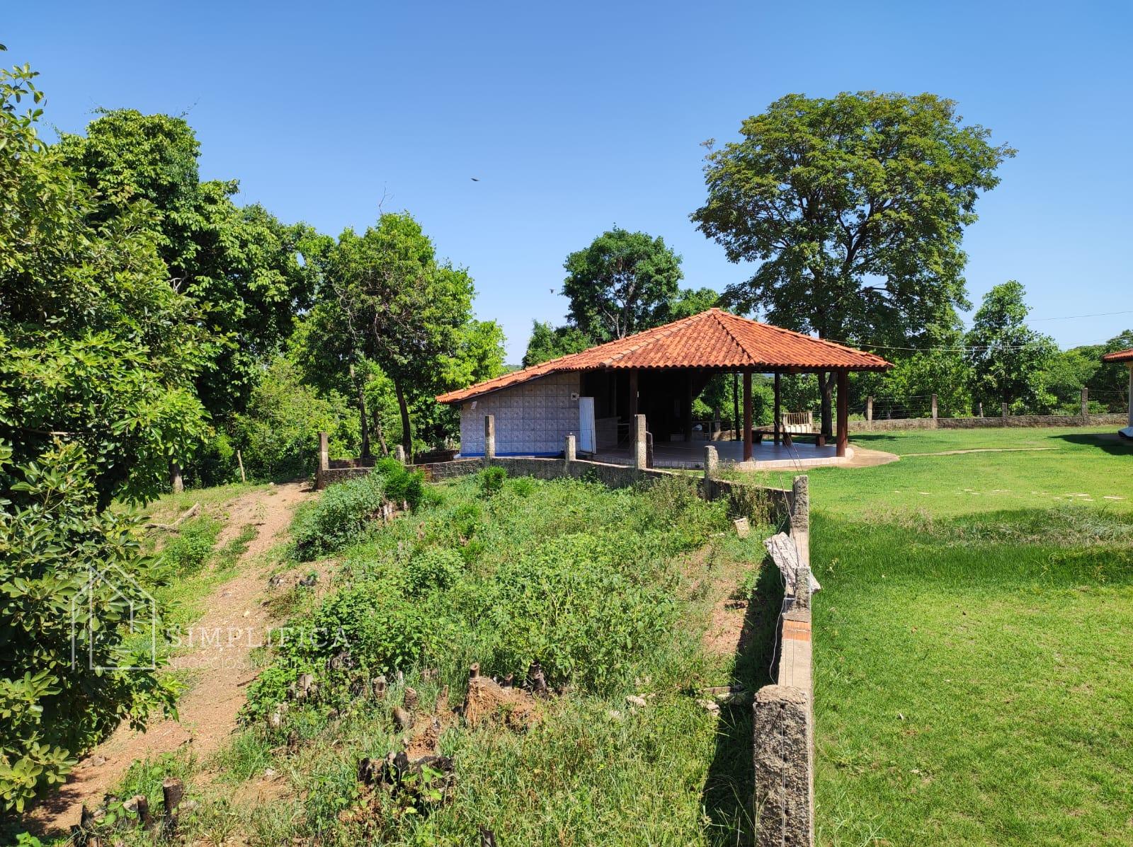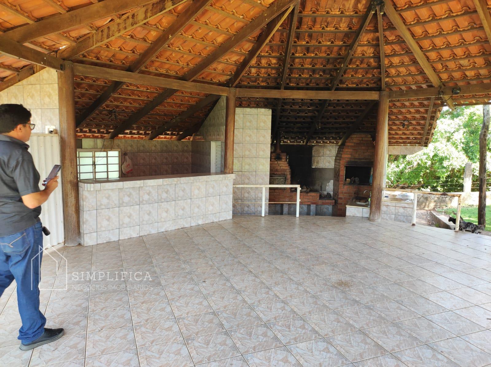 Casa sede toda na lajota e cerâmica, com quatro quartos suítes, sendo que num dos quartos com banheira com hidromassagem, um quarto simples, sala, cozinha ampla com balcão, área de serviços, duas despensas, toda avarandada, quiosque com banheira, área para mesas, cozinha com fogão caipira, churrasqueira. Casinha para gerador de energia. Todo esse espaço cercado com mureta e arame liso;