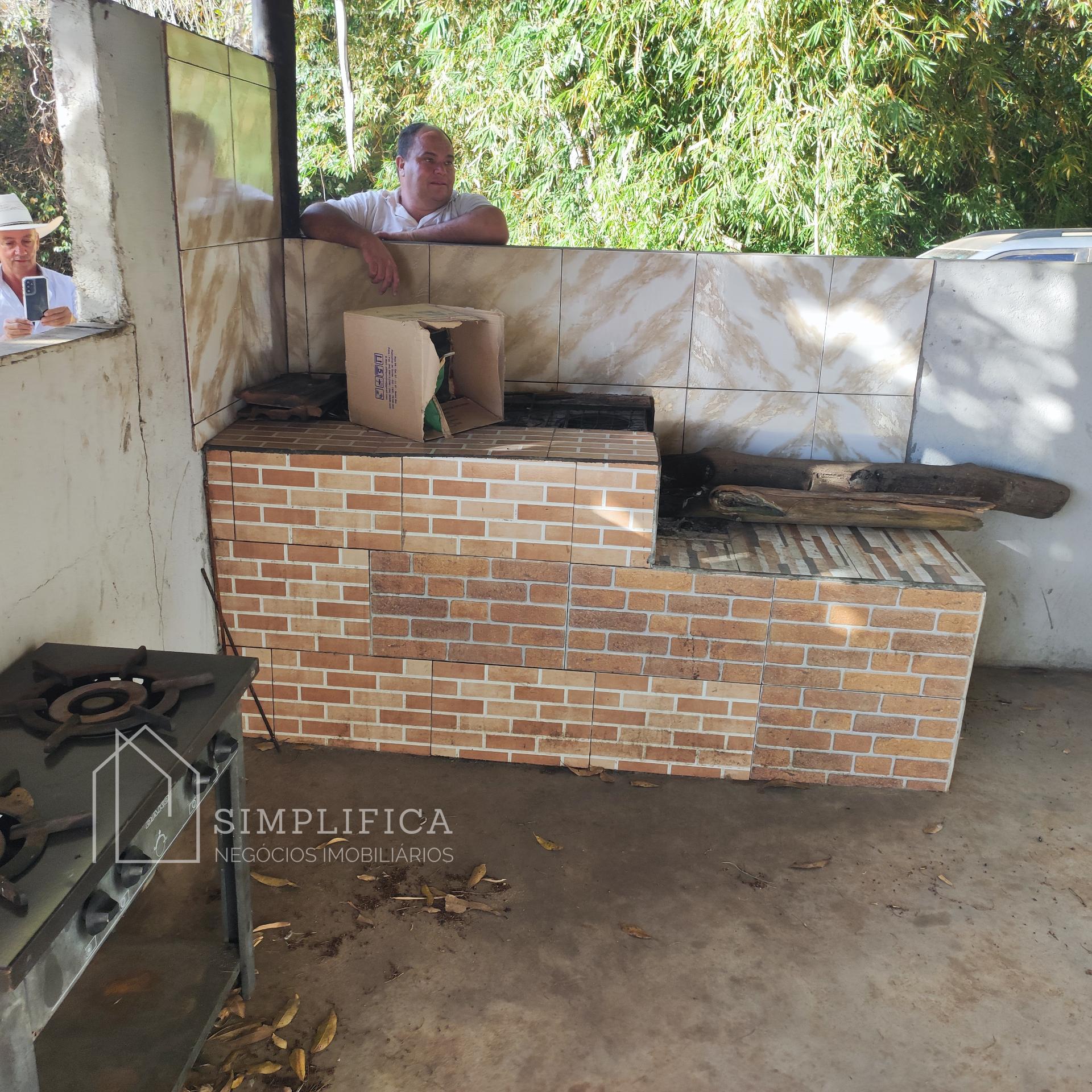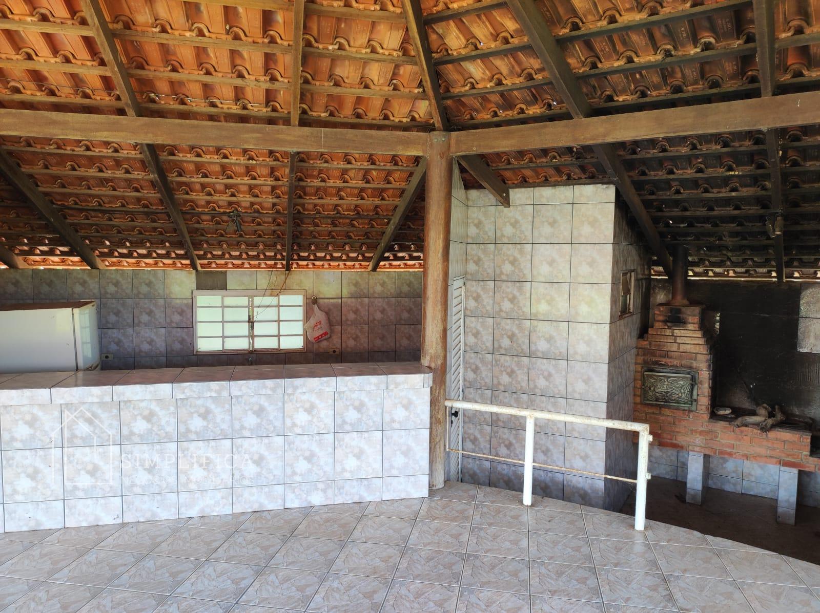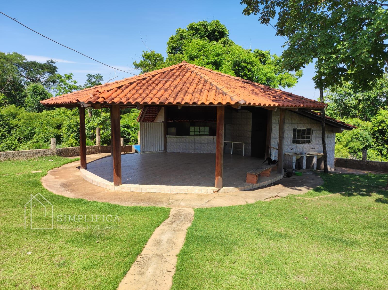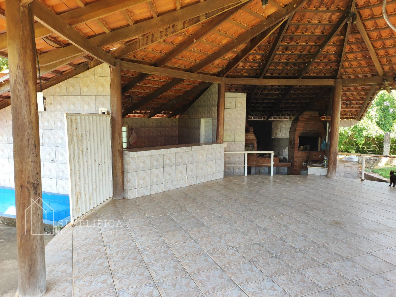 Casa sede toda na lajota e cerâmica, com quatro quartos suítes, sendo que num dos quartos com banheira com hidromassagem, um quarto simples, sala, cozinha ampla com balcão, área de serviços, duas despensas, toda avarandada, quiosque com banheira, área para mesas, cozinha com fogão caipira, churrasqueira. Casinha para gerador de energia. Todo esse espaço cercado com mureta e arame liso;