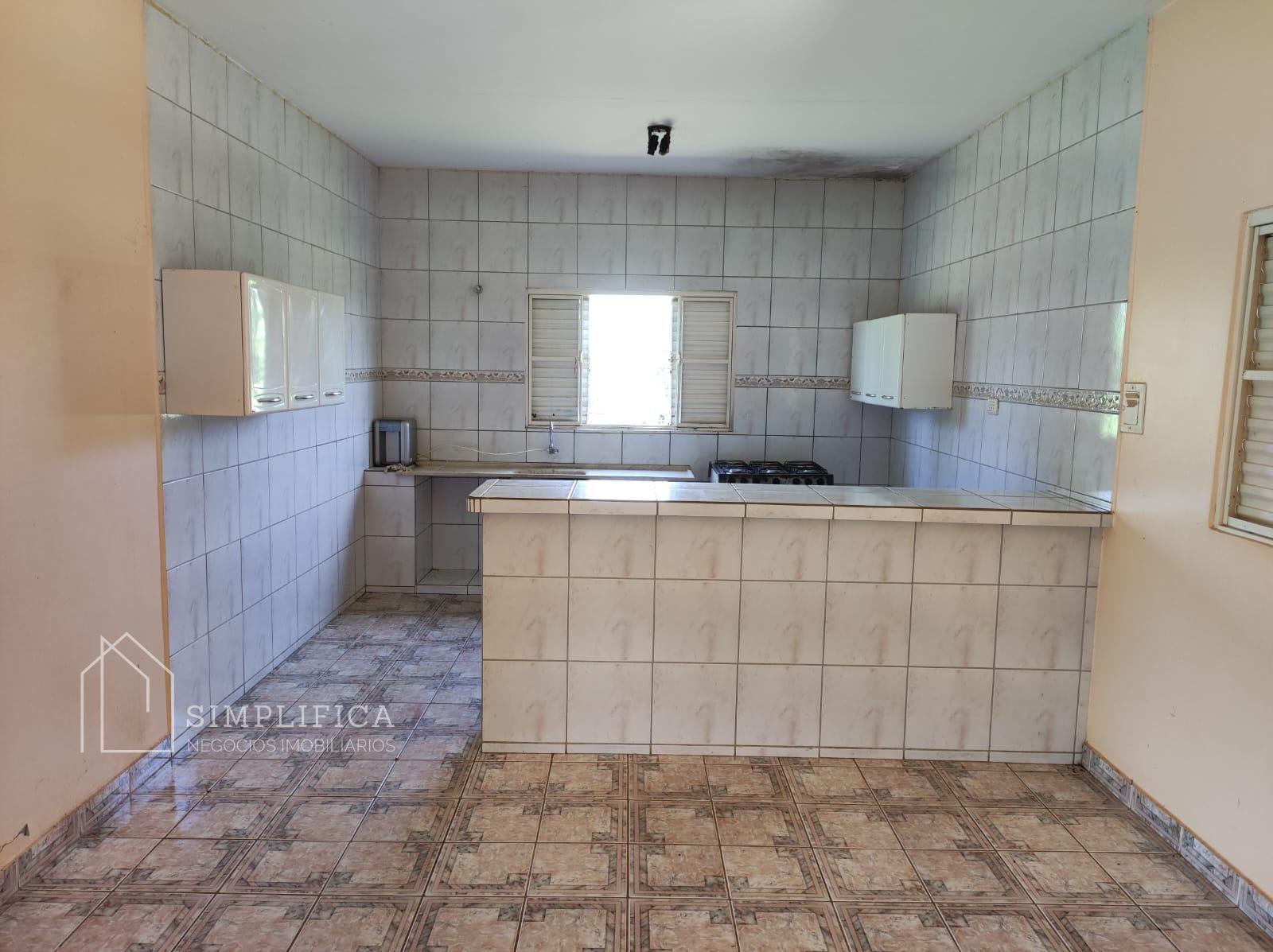 Casa de funcionário com sala, dois quartos sendo uma suíte, cozinha e área de serviços;