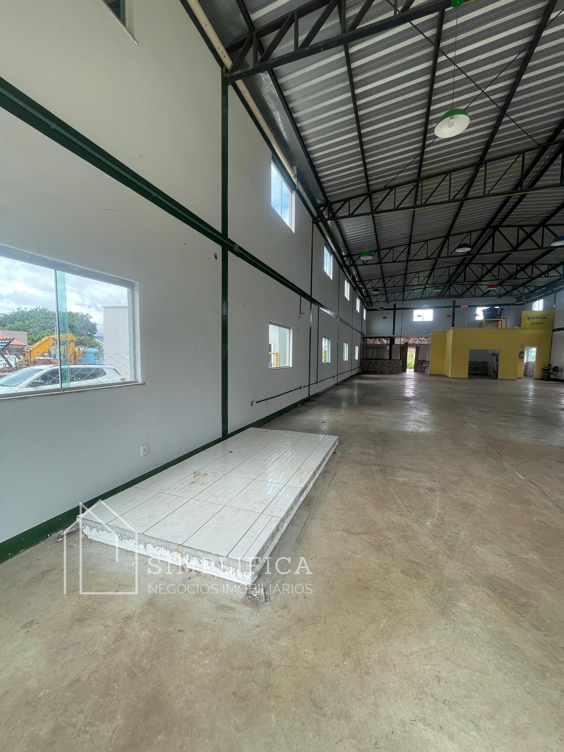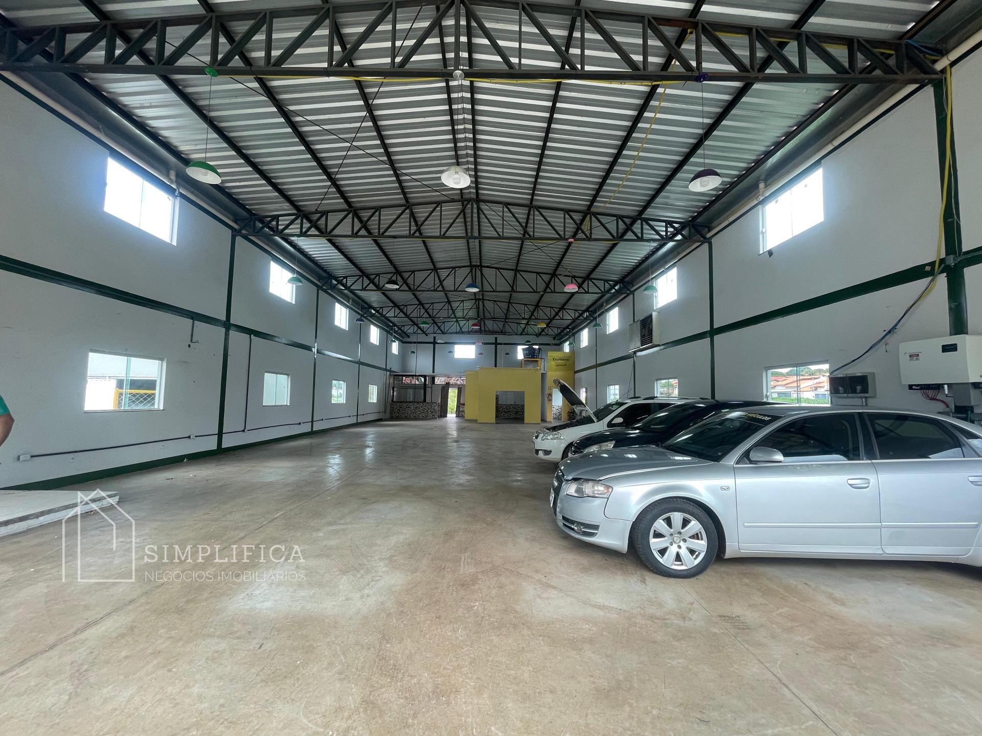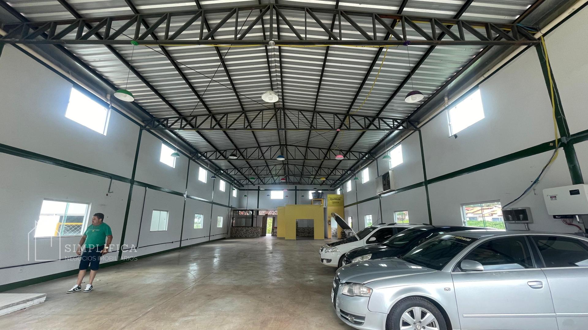 O galpão possui 360 m² de construção, feito em alvenaria e Blindex, com acabamento reboque interno e externo. A estrutura é de tijolo deitado, contendo cinco vigas horizontais em cada parede, e um pé direito duplo de 6,5 metros de altura.