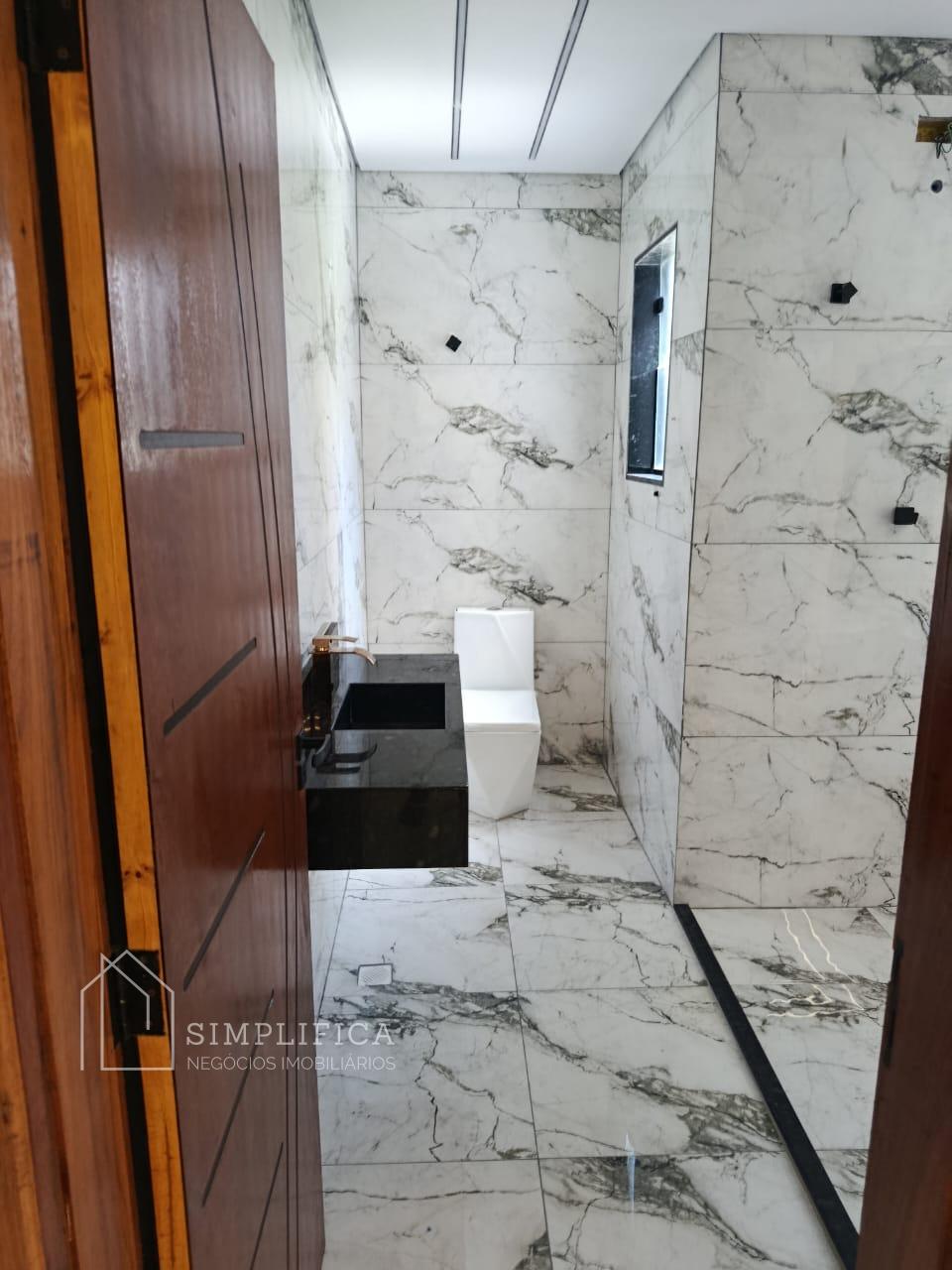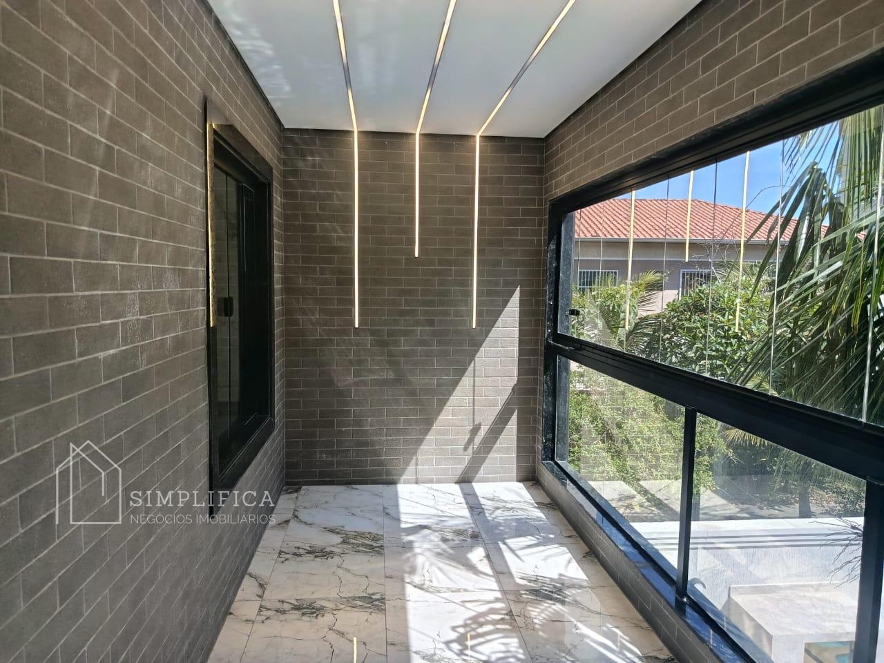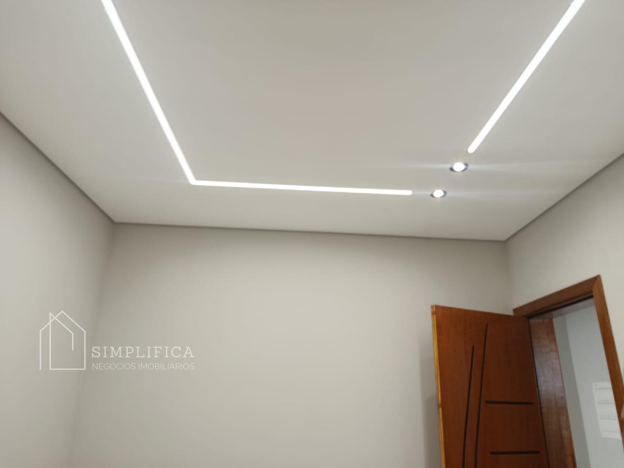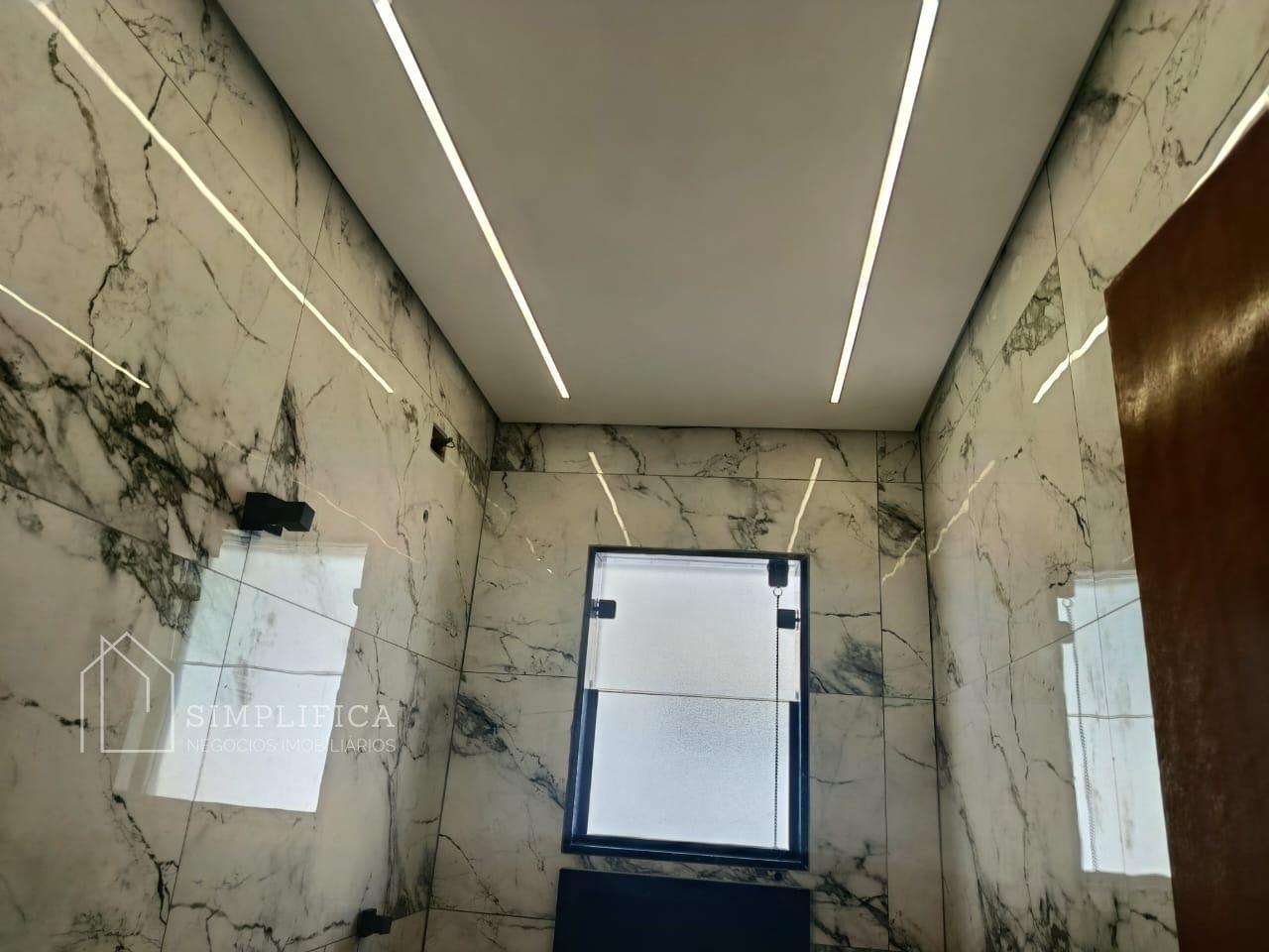 A casa possui estrutura em laje e drywall, iluminação em LED, piso em porcelanato 60x60 e revestimentos em porcelanato 62 x 1,22. Na área externa, porcelanato antitérmico.