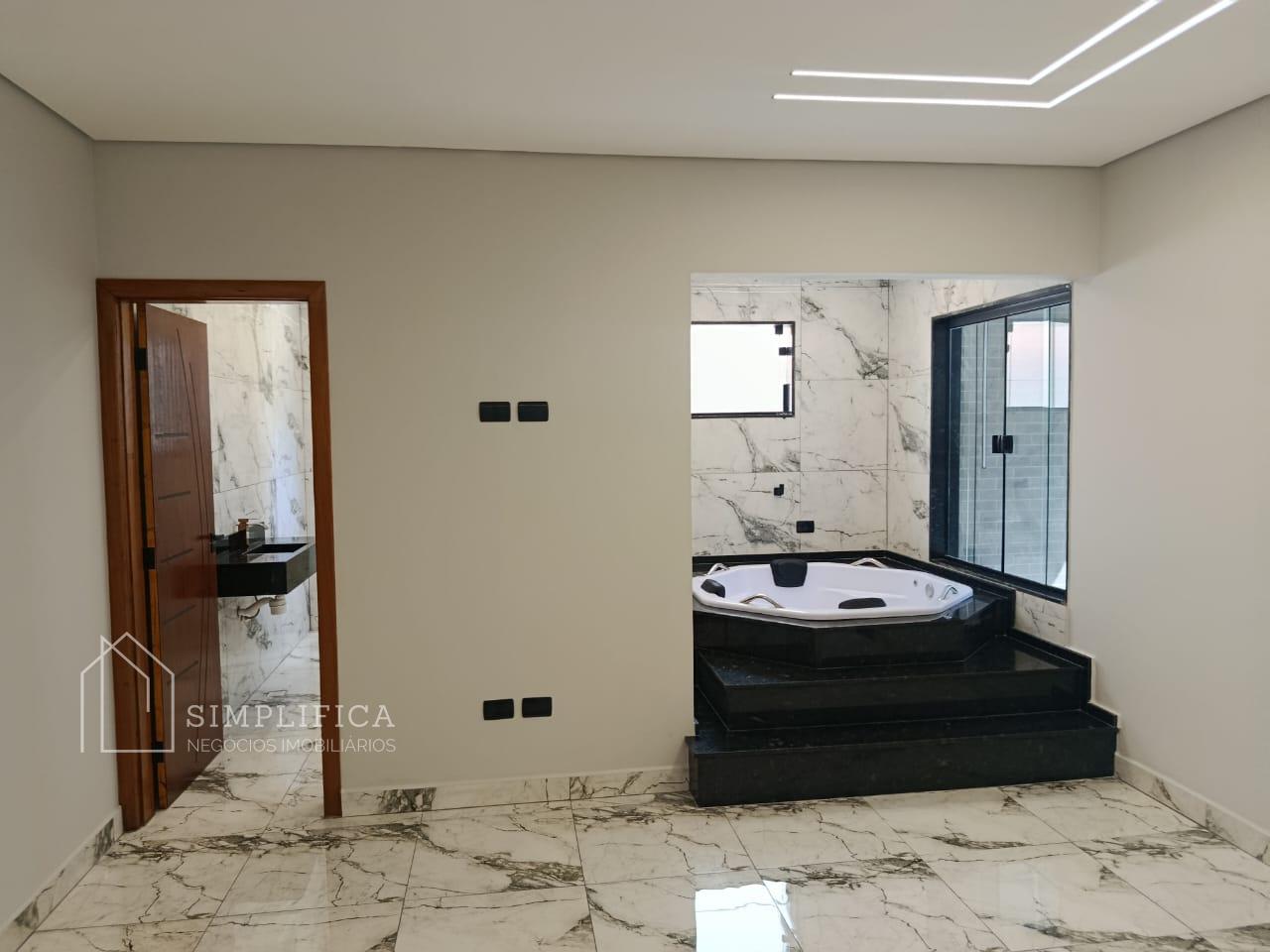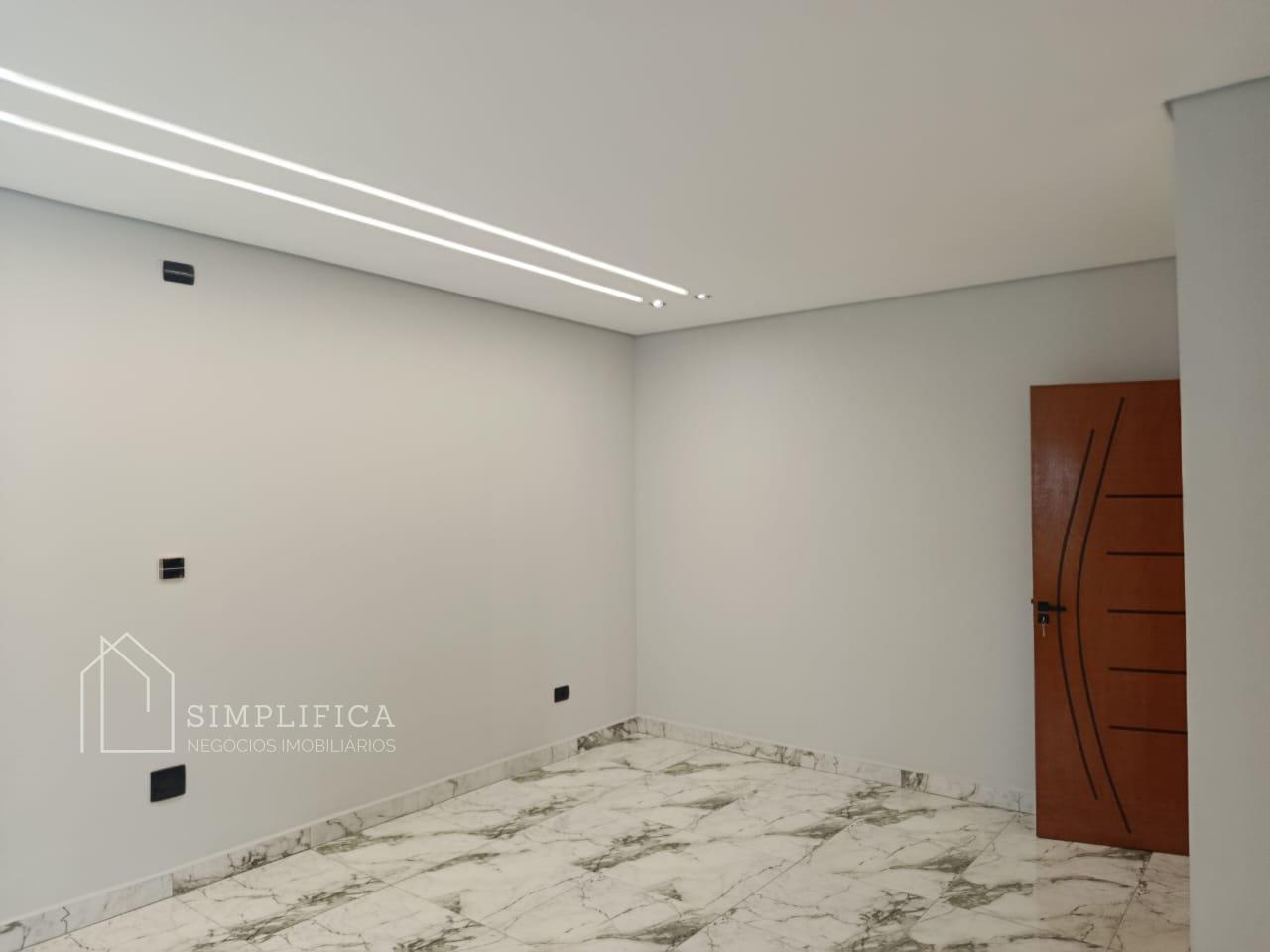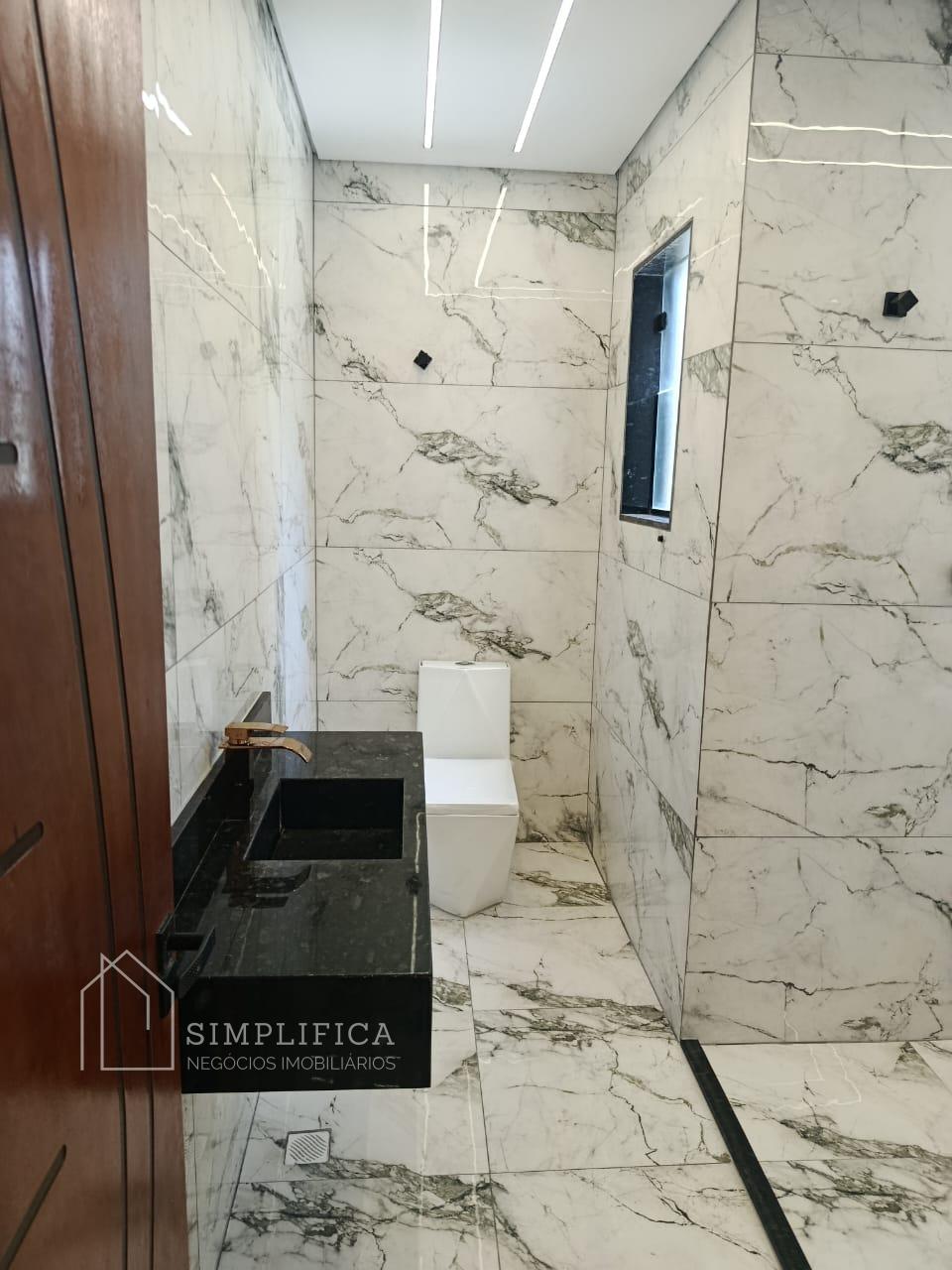 A casa possui estrutura em laje e drywall, iluminação em LED, piso em porcelanato 60x60 e revestimentos em porcelanato 62 x 1,22. Na área externa, porcelanato antitérmico.