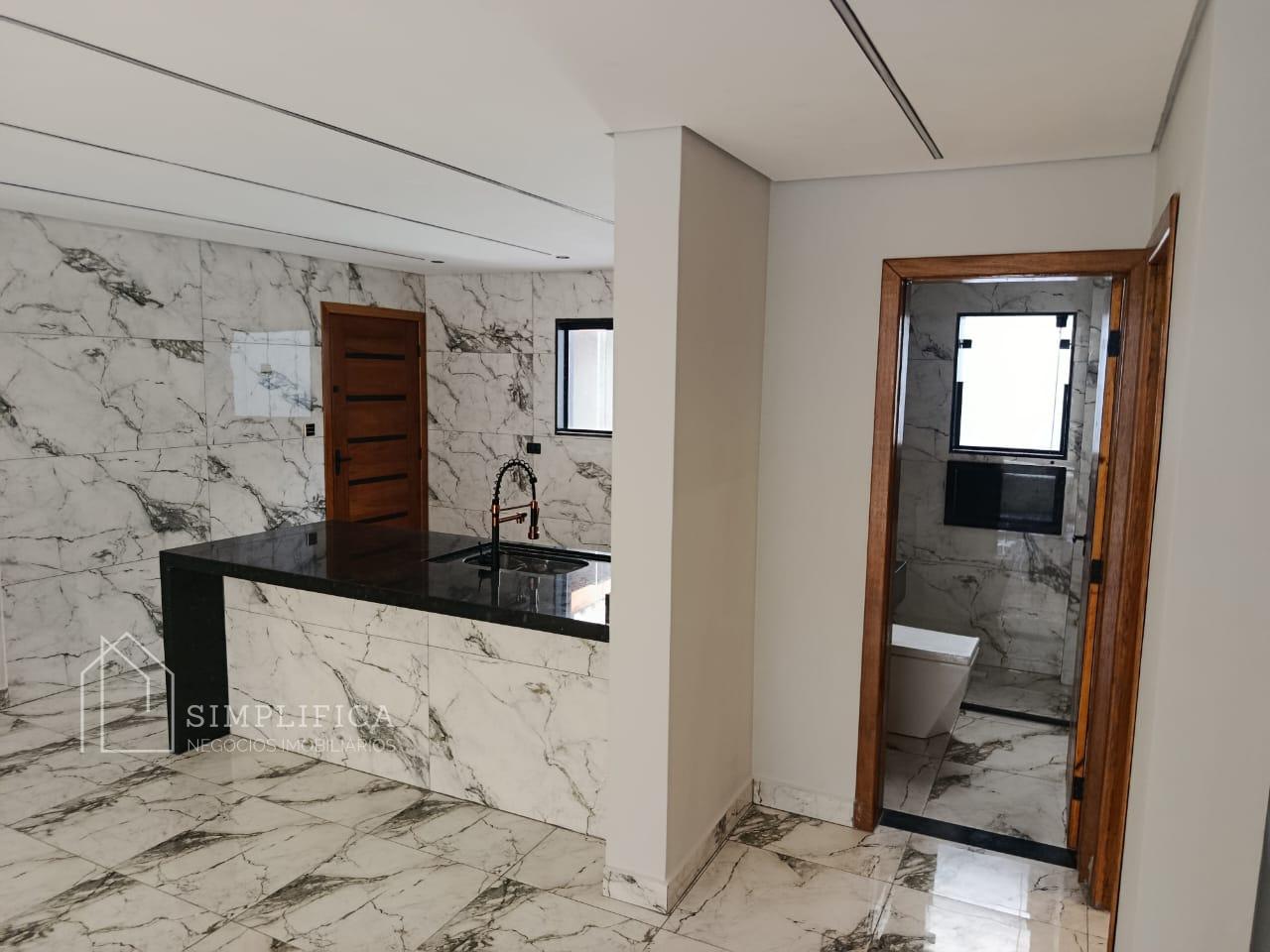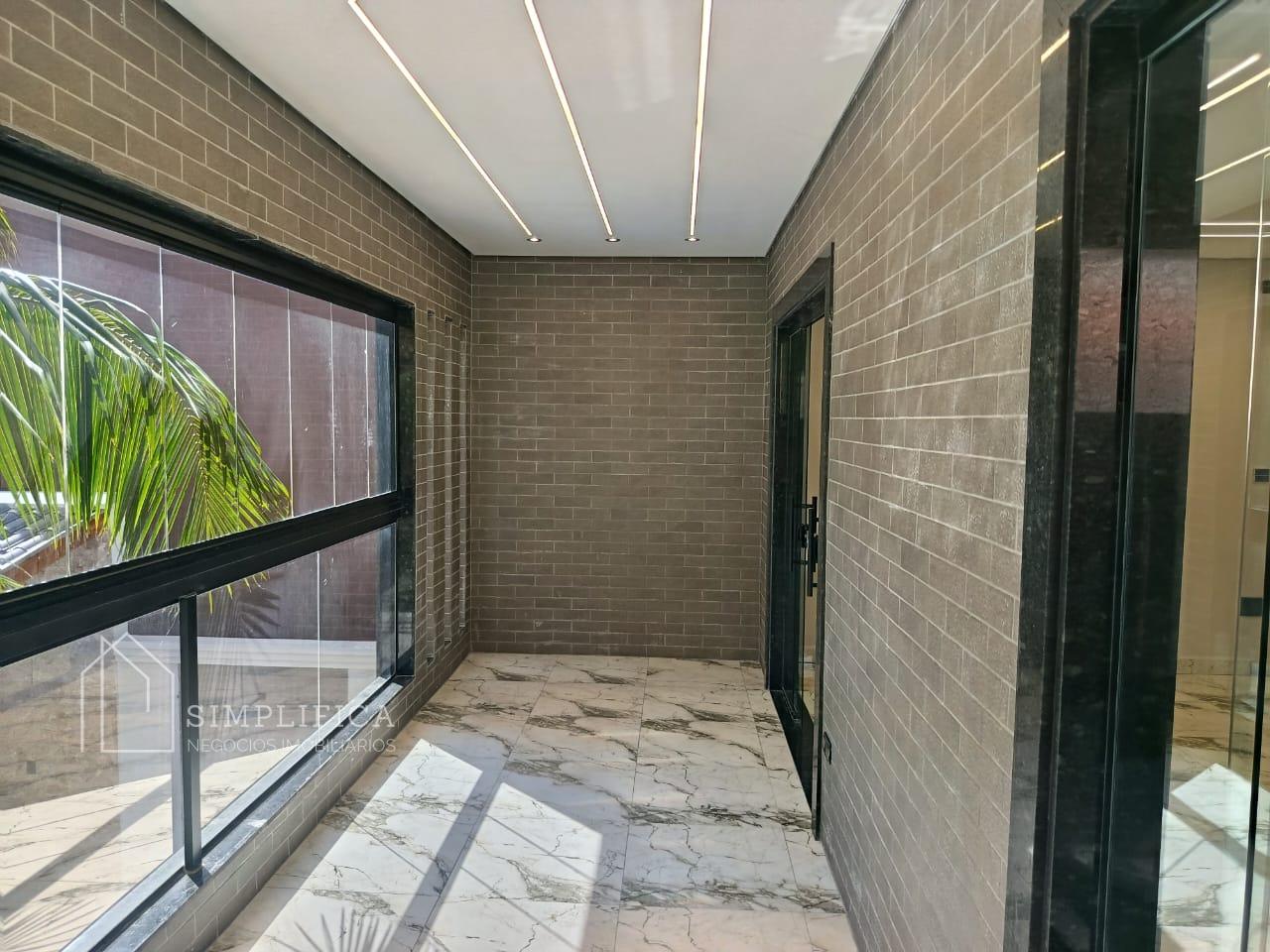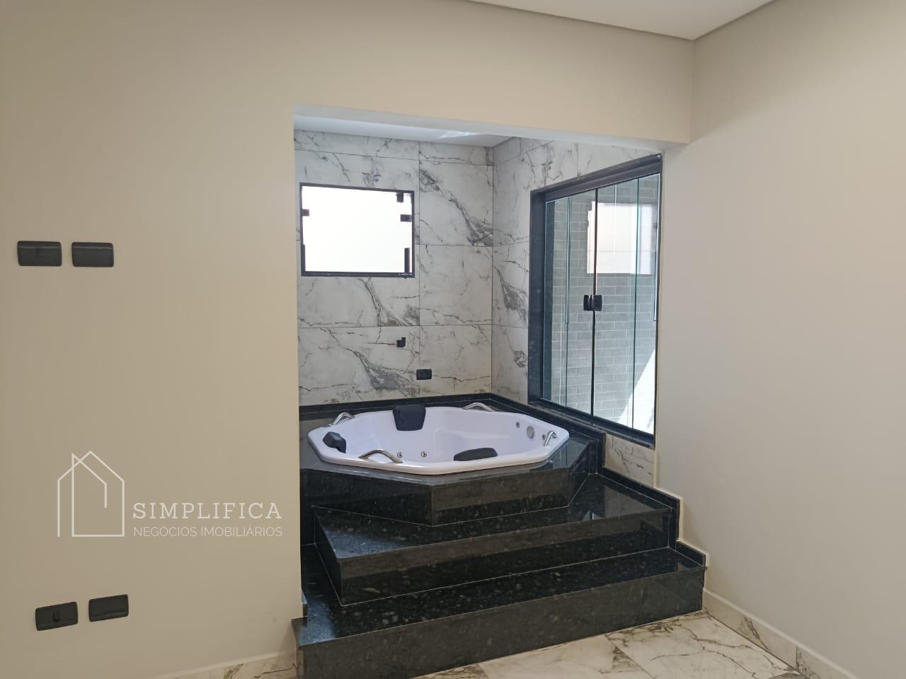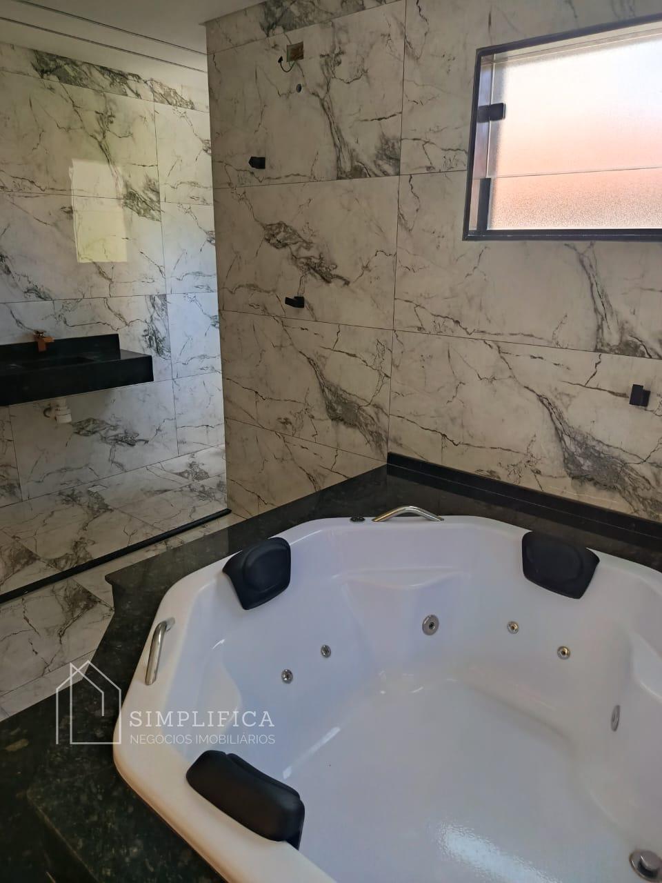 A casa possui estrutura em laje e drywall, iluminação em LED, piso em porcelanato 60x60 e revestimentos em porcelanato 62 x 1,22. Na área externa, porcelanato antitérmico.