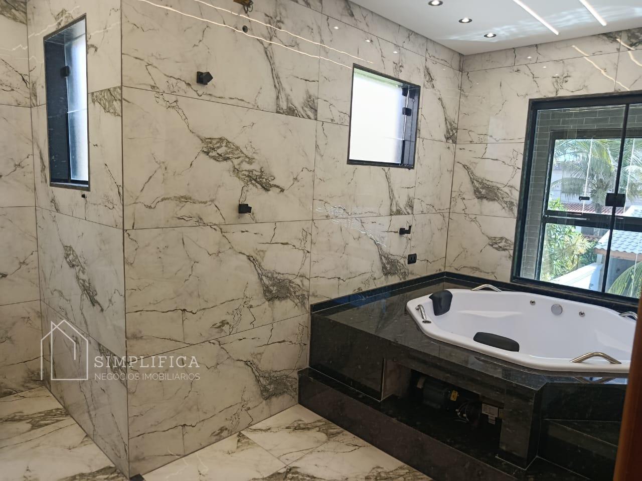Conta ainda com infraestrutura para ar-condicionado, portão 100% em alumínio com motor Jet, fechadura eletrônica na porta da sala (bateria recarregável, acesso por digital e tag), madeiramento em cedro com forro em cedrinho cerne, além de escada, pia e lavatórios em granito.